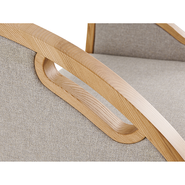 【材質(zhì)說(shuō)明】: 扶手外框采用A級(jí)白蠟?zāi)局谱?,木扶手?jīng)開料、造型、打磨、噴漆制作;座背軟包可選配布紋及皮革軟包。