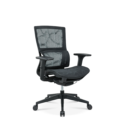 ★椅背:黑色PA背框,配特網(wǎng)面料,設有附合人體工程學的彈性自適應的腰靠
