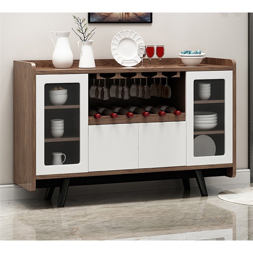 3、備餐柜左右兩邊及上部抽屜和柜門結合的封閉式空間搭配中間可上下調(diào)節(jié)的酒格設計別出心裁,增大儲物空間的同時更方便您陳列各式美酒;四個支撐腳設計,使備餐柜結構更加穩(wěn)固。