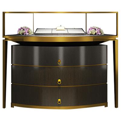 不銹鋼展柜設(shè)計(jì)定做廠家為您展示的是2020新款高端奢華珠寶地柜_拉絲紅銅不銹鋼玻璃展柜