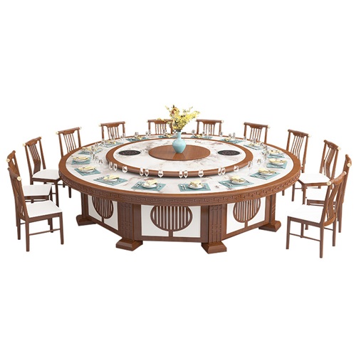 酒店包房新中式大理石電動轉(zhuǎn)盤2.8米火鍋餐桌圖