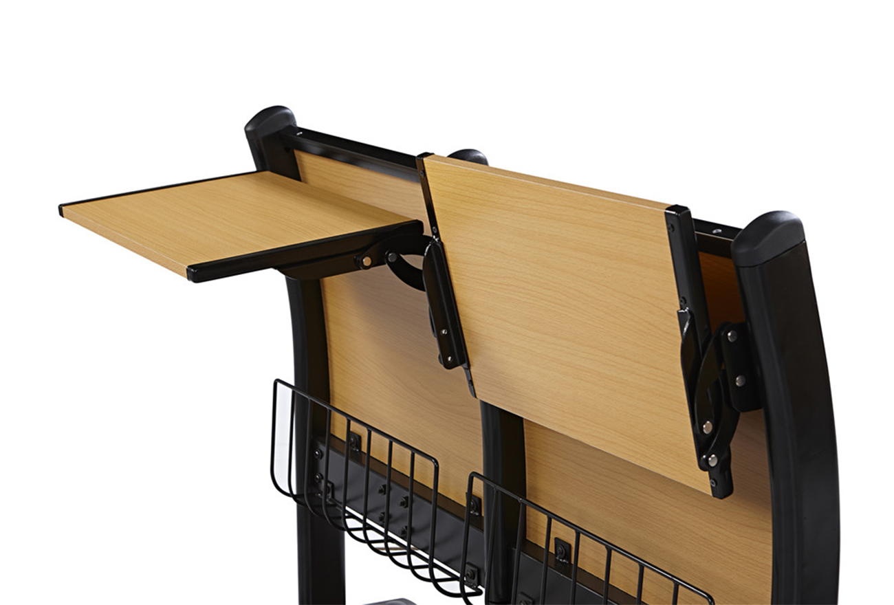 2、寫字板:板面采用優(yōu)質(zhì)三聚氰胺板、面粘防火板,支架采用鋼制鉸鏈活動式寫字板,牢固耐用,可承受150公斤重壓。