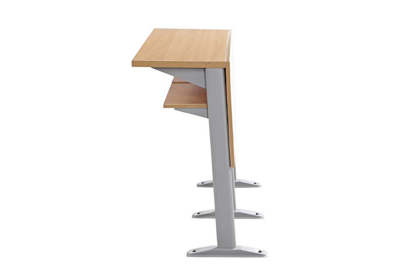 2、寫字板:板面采用優(yōu)質(zhì)三聚氰胺板、面粘防火板,支架采用鋼制鉸鏈活動式寫字板,牢固耐用,可承受150公斤重壓。