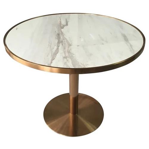 產(chǎn)品材質(zhì):不銹鋼桌腳+不銹鋼邊框鑲嵌大理石臺面
