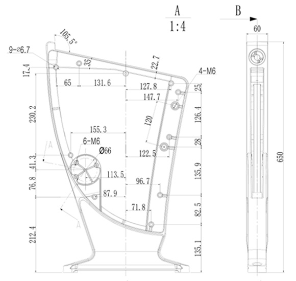鋁合金站腳外觀及尺寸 :
