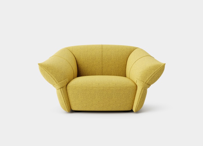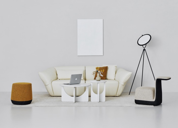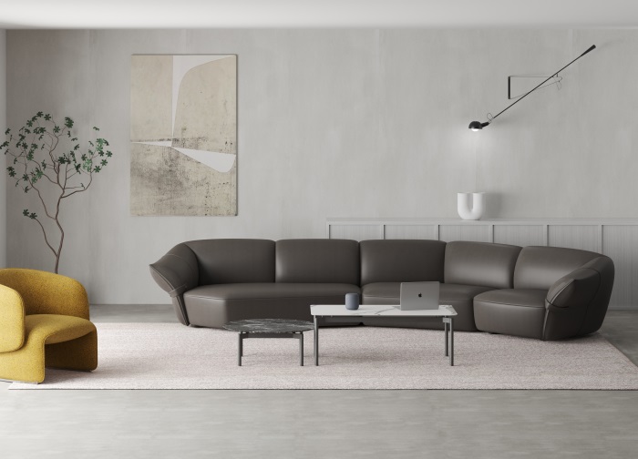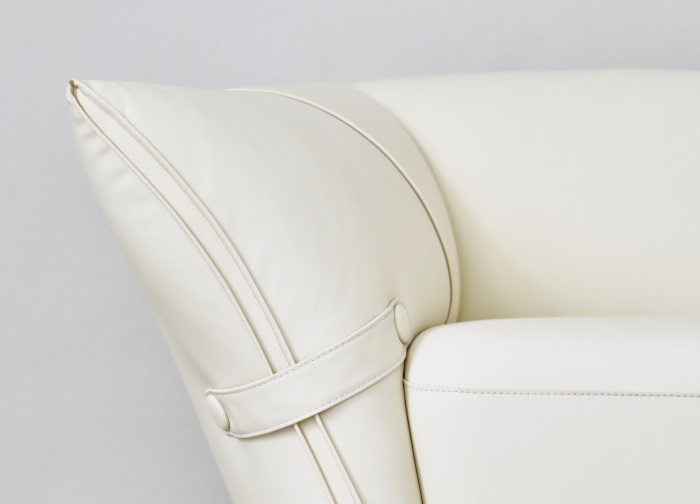 花朵盛開時,花瓣和花蕊會展開,設(shè)計師從花朵的外觀形象中提煉出花瓣盛開時的姿態(tài),并應用到沙發(fā)的設(shè)計中。沙發(fā)的扶手采用了往外張開的形狀,類似于花朵的花瓣展開的姿態(tài),同時扶手上還有滾邊點綴,使得整個沙發(fā)看起來更加生動有靈性。此外,沙發(fā)的扶手還可以作為靠背傾靠,滿足人們側(cè)坐時的需求。兩側(cè)拉扣的設(shè)計將外張的扶手往回收攏,猶如花瓣被花托收攏的形態(tài),使得產(chǎn)品設(shè)計更加完整,有生命力。