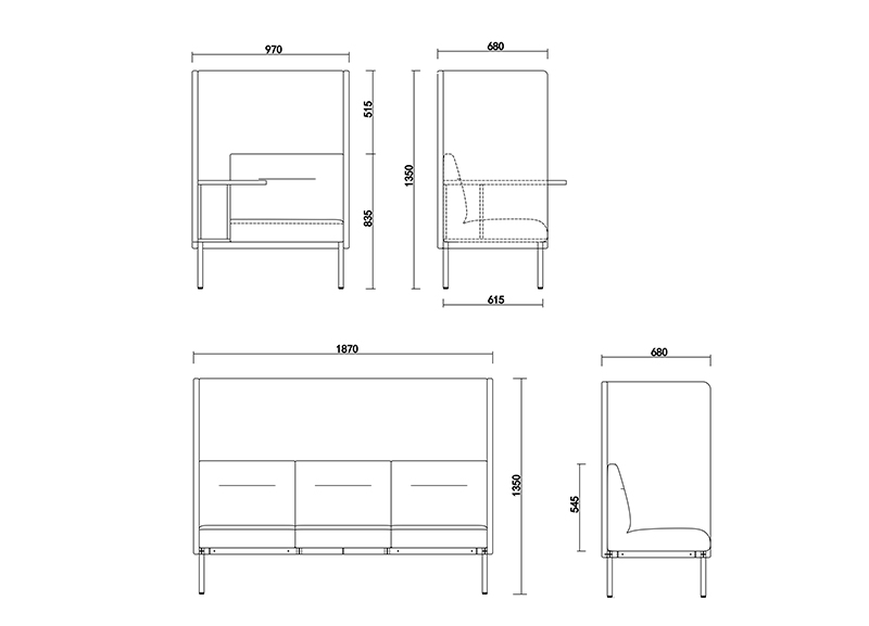 Santo Highback Sofa桑特圍合沙發(fā)是在桑特模塊沙發(fā)的基礎(chǔ)上,增加了圍合的軟包屏風,以及書寫板模塊,更加適用于現(xiàn)代提倡的休閑私密辦公模式。