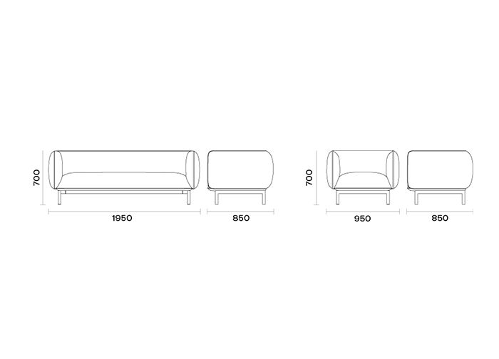 Mello系列的設計靈感來源于方形軟糖,設計師通過觀察糖果圓潤的邊緣、 豐滿的形狀以及棉柔的口感,提取元素融入家具設計。